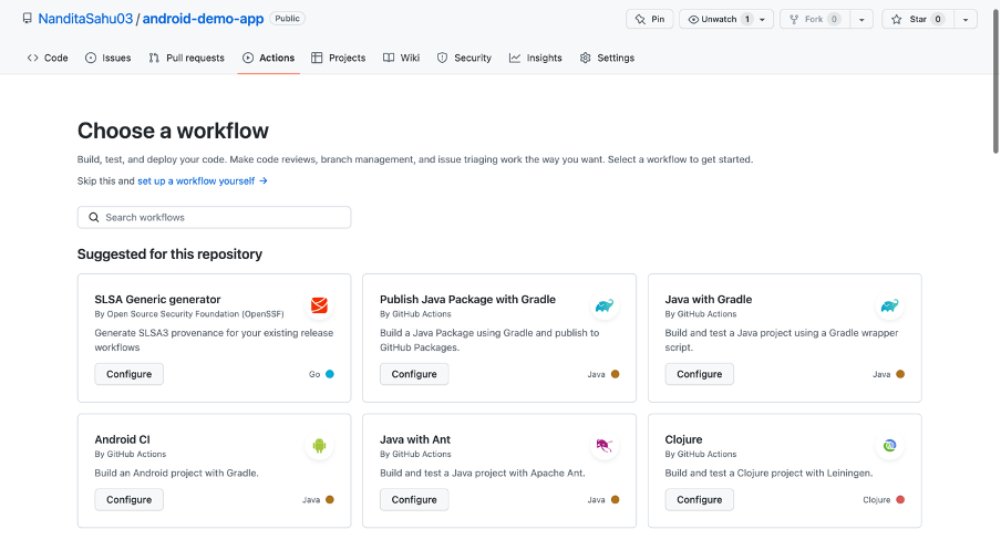 name : The name of the workflow as it will appear in the “Actions” tab of the GitHub repository. Like here it is “Android CI”on: Specifies the trigger for this workflow. So here the workflow will be triggered when there is a push event in “main” branch and pull_request event in “main” branchjobs: A workflow job is a set of steps that execute on the same runner. We can have multiple jobs in a single workflow yml file. Groups together all the jobs that run in the Android CI workflow. Here, in the example there is a single job whose name is buildruns-on: Configures the job to run on the latest version of an Ubuntu Linux runner. This means that the job will execute on a fresh virtual machine hosted by GitHub. You can use windows and macOS runner too.steps: Groups together all the steps that run in the build job. Each item nested under this section is a separate action or shell script.uses: actions/checkout@v3 : The uses keyword specifies that this step will run v3 of the actions/checkout action. This is an action that checks out your repository onto the runner, allowing you to run scripts or other actions against your code (such as build and test tools). You should use the checkout action any time your workflow will run against the repository's code.uses: actions/setup-java@v3 : This step uses the actions/setup-java@v3 action to install the specified version of the JDK (this example uses v11) of distribution: 'temurin'run: chmod +x gradlew: The run keyword tells the job to execute a command on the runner. In this case, you are granting execute permission for gradlewrun: ./gradlew build: In this case you are building the code using gradle
